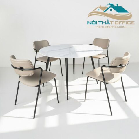 ♦ Tên sản phẩm: Bàn Ăn Mặt Đá Ceramic Chân Bọc Da PU Cao Cấp BA-005