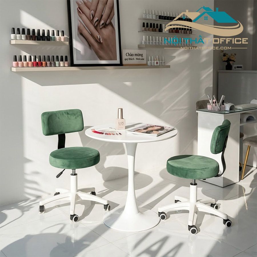 Ghế Xoay Kỹ Thuật Viên Spa Nail GSPA-018 là sự lựa chọn lý tưởng cho các chuyên gia làm đẹp, đặc biệt là các kỹ thuật viên nail hoặc nhân viên spa, những người cần một chiếc ghế có thể di chuyển dễ dàng, thoải mái và hỗ trợ làm việc lâu dài. Với thiết kế đẹp mắt, tính năng xoay 360 độ, điều chỉnh chiều cao linh hoạt, và khả năng di chuyển dễ dàng, ghế này sẽ giúp nâng cao hiệu quả công việc và tạo không gian làm việc chuyên nghiệp, sang trọng.